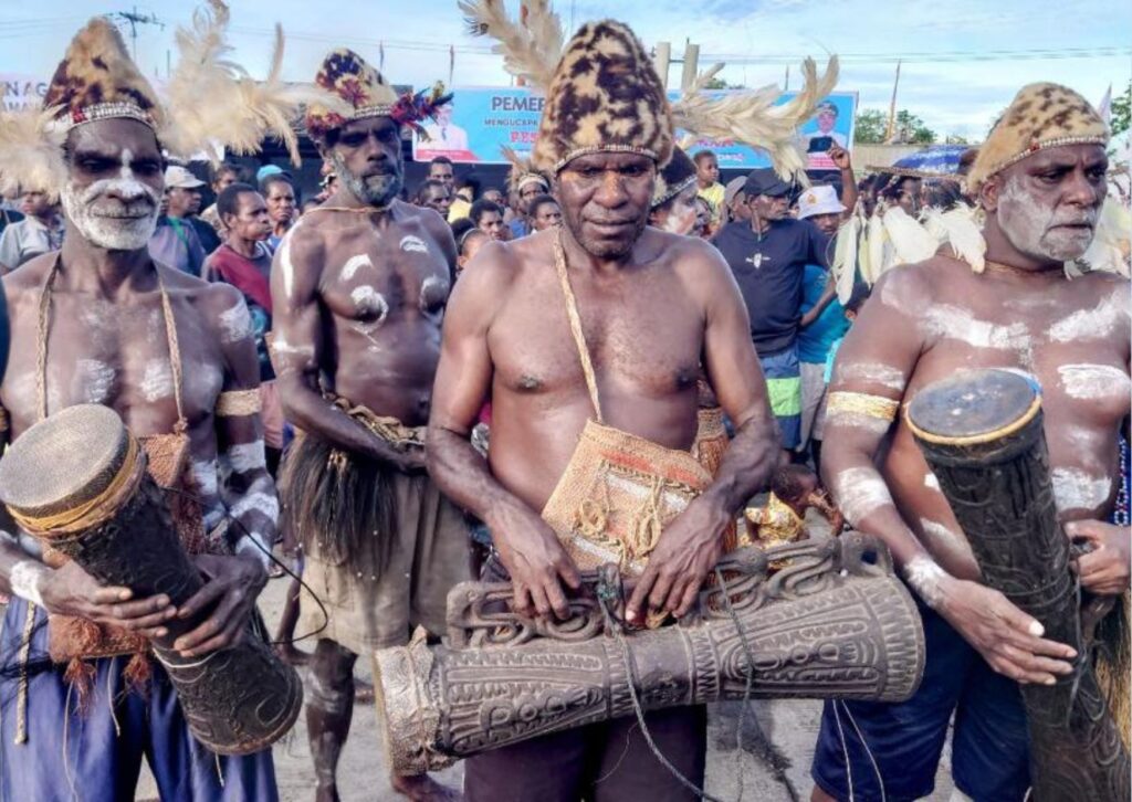 The Asmat people, according to Father Zegwaard, a Dutch Catholic missionary, believe they are descended from the Deity Fumeripits (God the Creator). That said, the god Fumeripits was stranded on the beach dying and unconscious due to fighting a giant crocodile in the land of Papua. Nevertheless, a flock of flamingos intervened to save his life, allowing him to survive and recover. Then, he lived by himself near a river. Fumeripits, the creator deity, erected the “Yew” house, a lengthy structure filled with wooden figurines he had personally crafted into human shapes, as a way to alleviate his loneliness. Nonetheless, he continued to feel lonely. Feeling driven to create sounds, he built a tifa, a wooden drum, which he pounded daily. One day the wooden statues he had made moved and danced to the rhythm of the tifa being played. Miraculously, the statues then turned into a living human form. They danced to the rhythm of the tifa beat with their legs slightly apart and their knees moving left and right, which is now the traditional dance of the Asmat tribe that is performed whenever there is a traditional event.