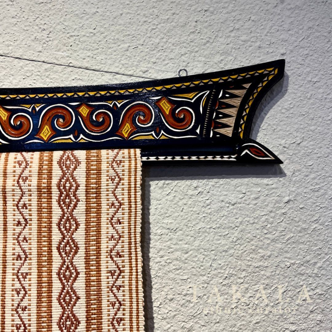 In the Toraja language, Passura’ means carving or engraving. Traditionally, these intricate motifs are found on Tongkonan (traditional Toraja houses), Alang (rice barns), and Erong (wooden coffins), each carrying deep philosophical meanings about life, nature, and spirituality. Today, Passura’ patterns are also beautifully adapted into woven fabric hangings, such as this piece, combining traditional symbolism with decorative artistry to bring a touch of Toraja heritage into modern spaces.