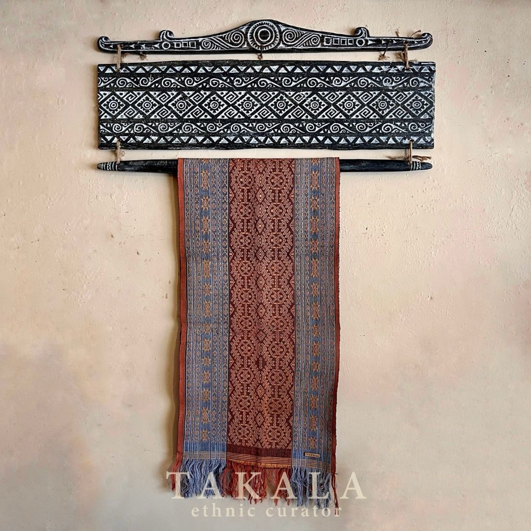 The carving on top commonly used for headband in the Helong Tribe’s traditional clothing from the East Nusa Tenggara region. This headband is quite similar to a male crown. The Crown traditionally represents power, victory, honor, and glory. The middle part represents the woven textile motif of East Nusa Tenggara.
