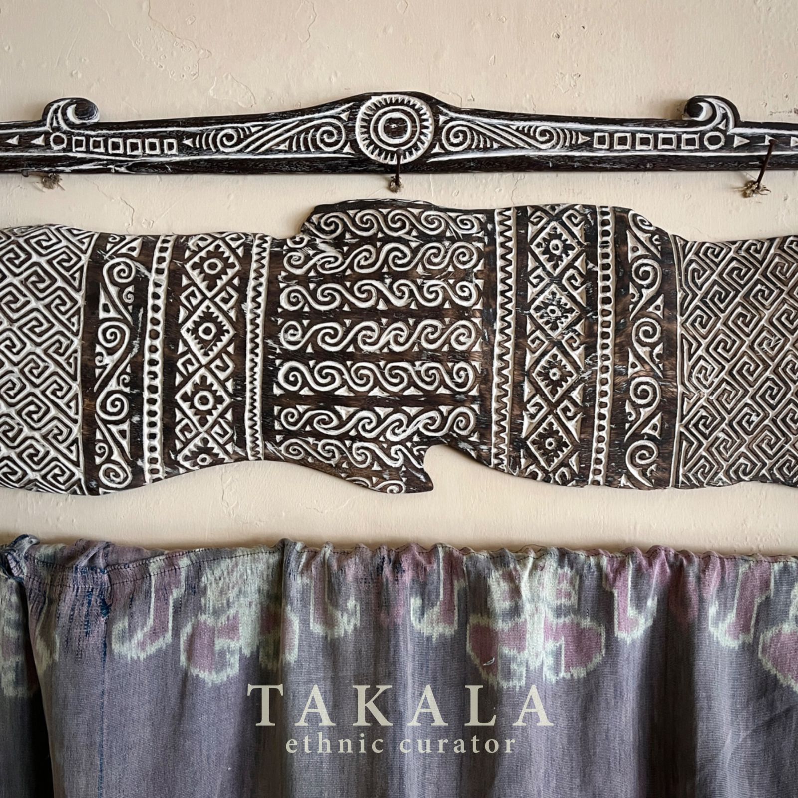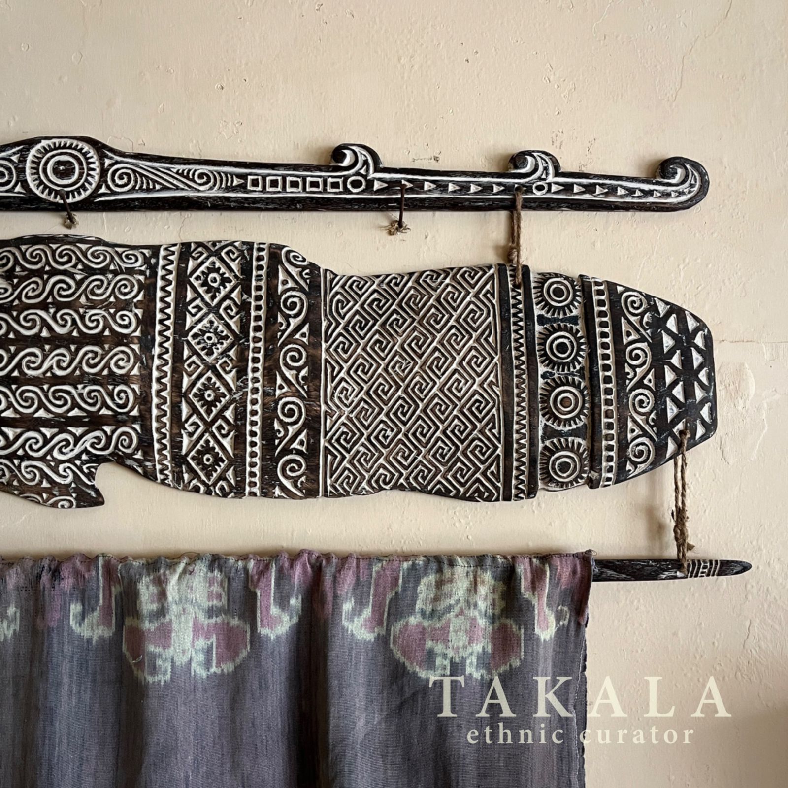 Origin: Flores, East Nusa Tenggara Material: Burned Acacia Wood Size: Hanger 136 x 44,5 x 1 cm BB[3 stack wood, fit into 121,5 cm woven piece] Weight: 4,16 kg