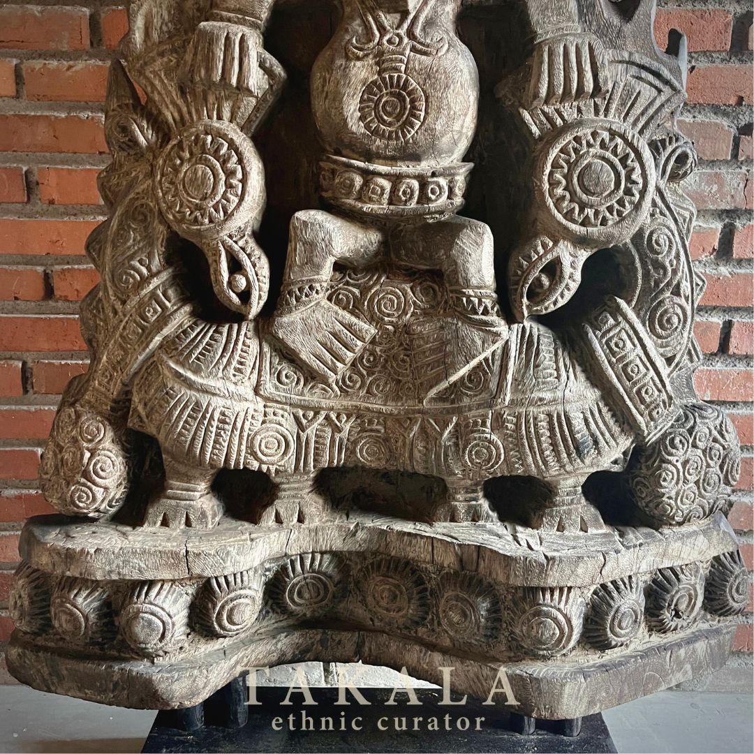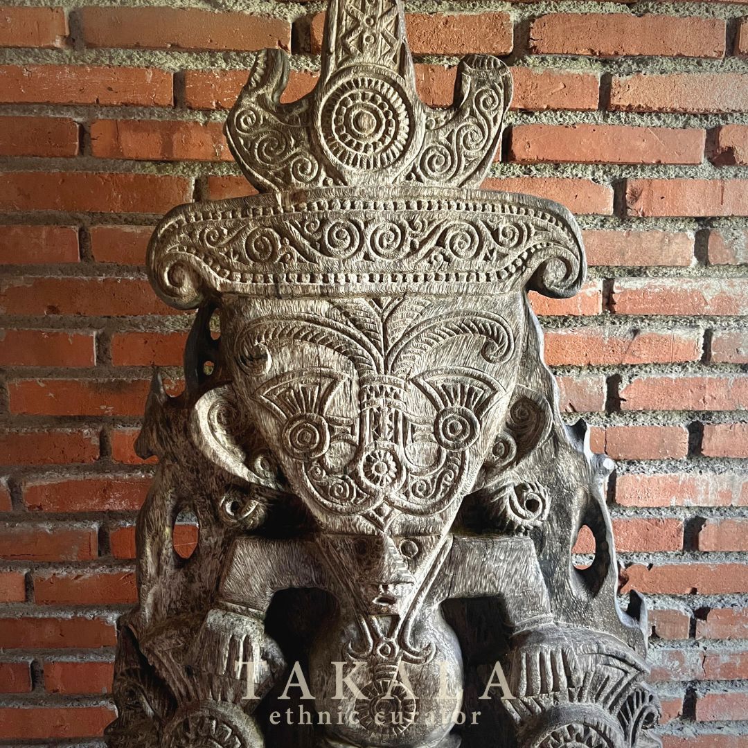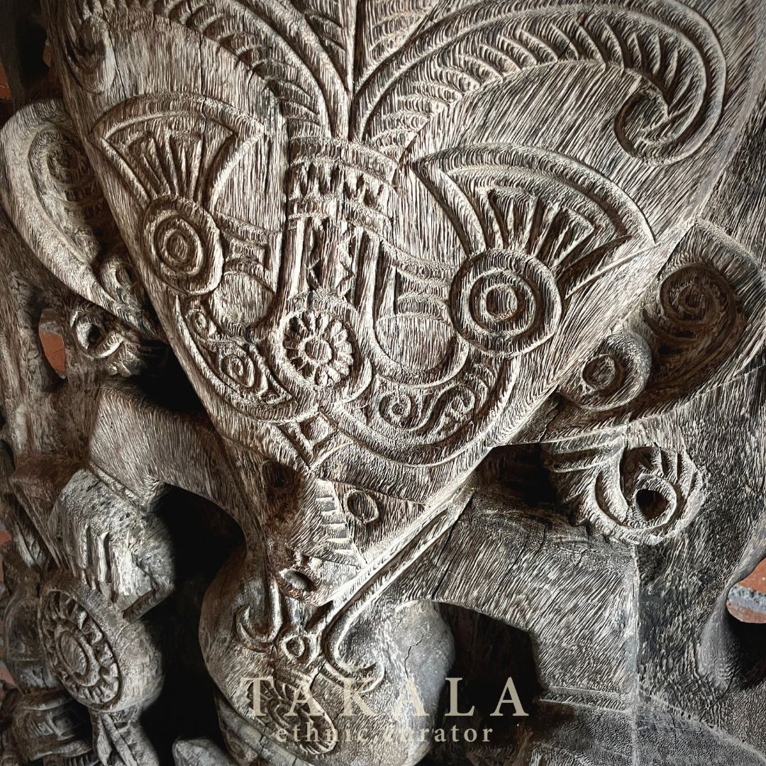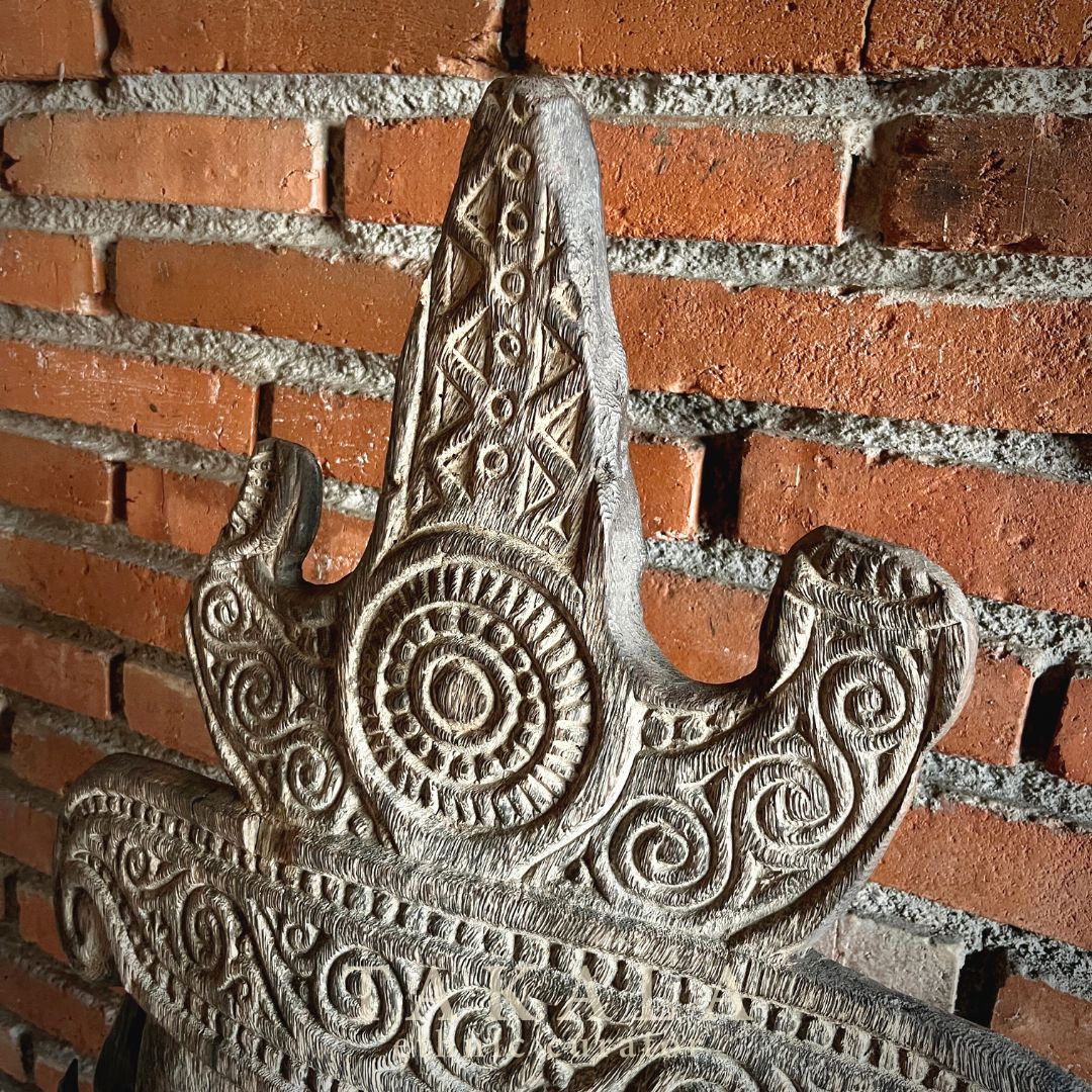 This sculpture depicts twin birds ridden by a king ancestor, serving as a symbolic reminder of ancestral spirits believed to protect the village and bring prosperity to its people. The figure reflects the close relationship between leadership, nature, and ancestral guardianship in Flores culture. The birds are inspired by Lawe Lujang, a mystical and elusive bird revered in local belief. Known for its long, flowing white tail feathers, Lawe Lujang is rarely seen in the wild and inhabits the forested areas around Flores. Its beauty and mystery have elevated it to a sacred status; encountering this bird is believed to be a sign of good fortune and blessing.Through this sculpture, myth, memory, and nature intertwine, embodying protection, prosperity, and the enduring presence of ancestors watching over the land.