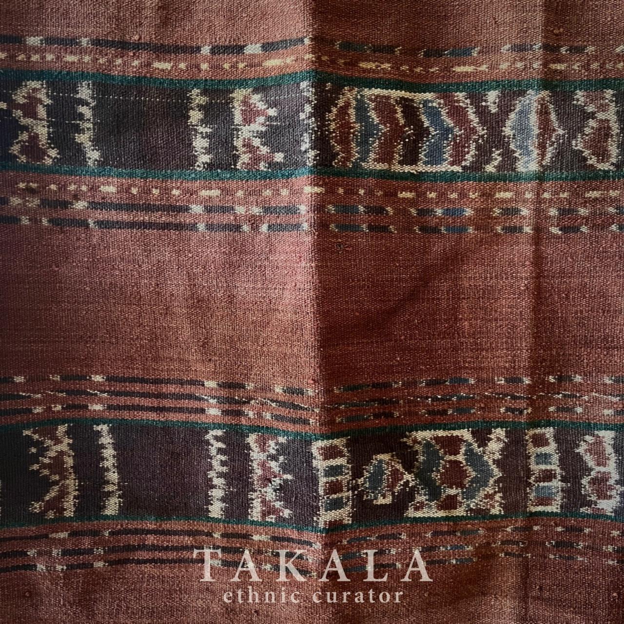 Nilung Sisa Matang, meaning “turtle” in the local language, is a traditional ikat weaving motif from Uma Pura, Ternate Village, Alor Regency, East Nusa Tenggara. Renowned for its deep red hues, achieved through a meticulous dyeing process using mengkudu root, the fabric reflects the region’s preference for richer, darker tones compared to Sumba’s brighter reds. The dyeing process, requiring multiple rounds of dyeing and months of storage between dippings, can span years to achieve shades from rust to maroon. Primarily used for women’s clothing and sarongs in important cultural ceremonies, such as weddings and funerals, the textile embodies both artistry and deep cultural significance.