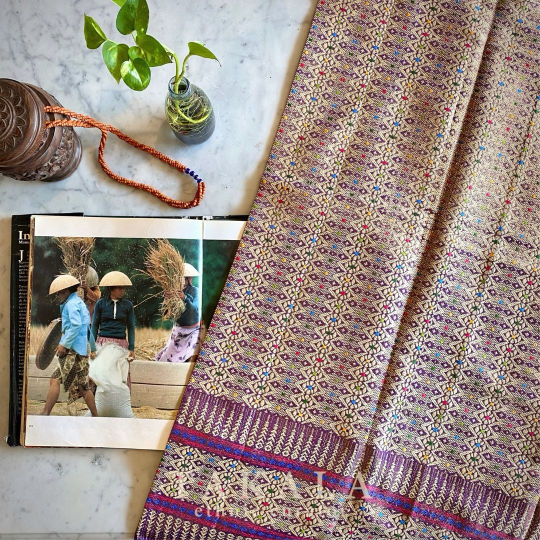 This woven songket textile is composed of multiple ornamental motifs, most notably the serat penginang motif, characterized by its zig-zag pattern, and the double trudak motif, which takes the form of a six-petaled flower. Together, these motifs are not merely decorative elements but carry symbolic meaning. They express the value of togetherness, emphasizing that individuals are encouraged to live in harmony, maintain mutual respect, and cultivate peaceful, balanced relationships within their community.