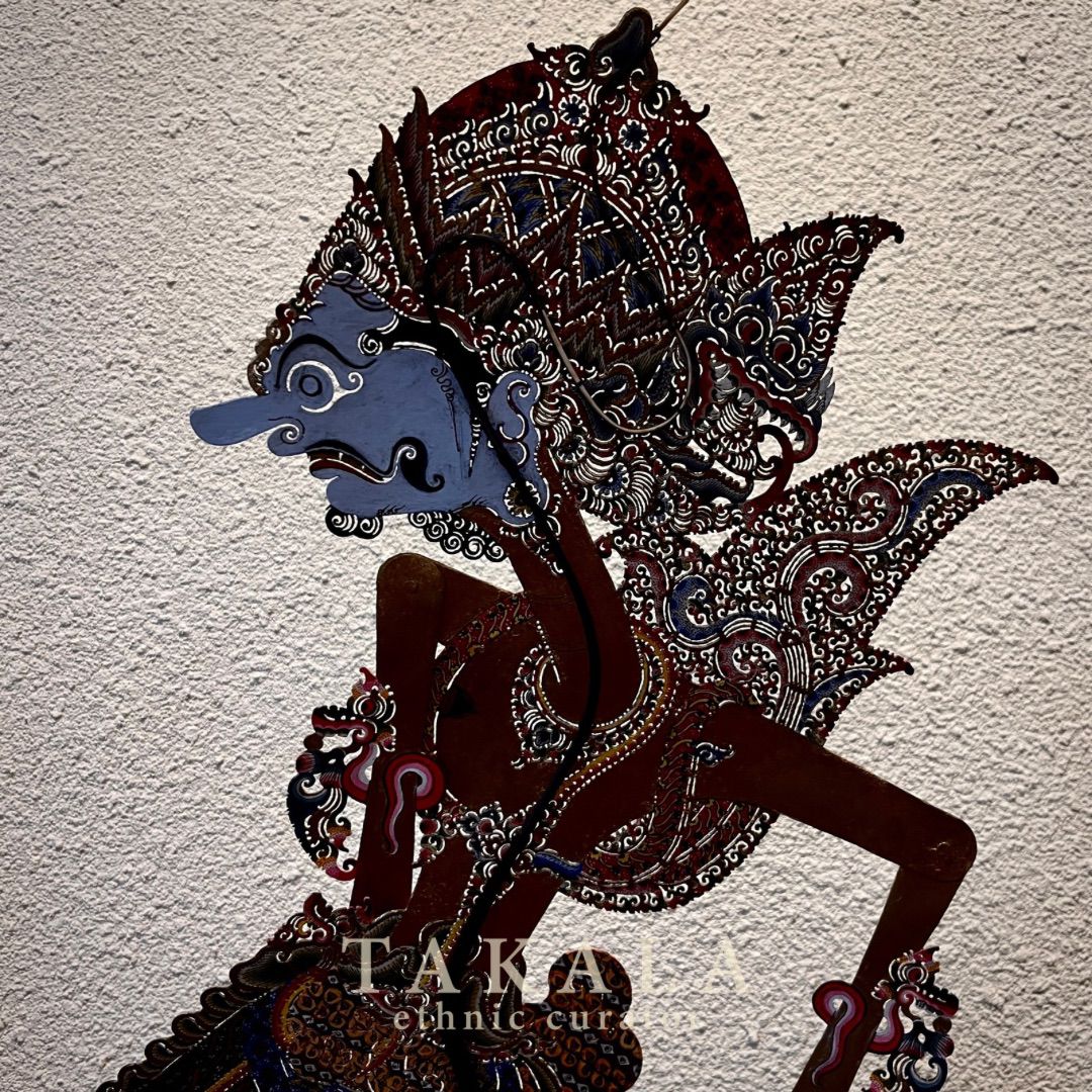 Raden Boma Narakasura, also known as Raden Suteja, is a character in the Javanese wayang tradition, depicted as the son of Kresna (Krishna) and Dewi Pratiwi (Bhumi Devi). As the offspring of a god and the earth goddess, he possesses immense strength and mystical abilities, including the Pancasona power that makes him invincible as long as he touches the ground. He is typically portrayed as a strong, imposing warrior with a fierce nature. Despite his noble lineage, Raden Boma becomes known for his arrogance and ambition, which ultimately put him at odds with heroic figures and even his own father. His story reflects the wayang tradition’s moral focus on the consequences of pride and misuse of power.