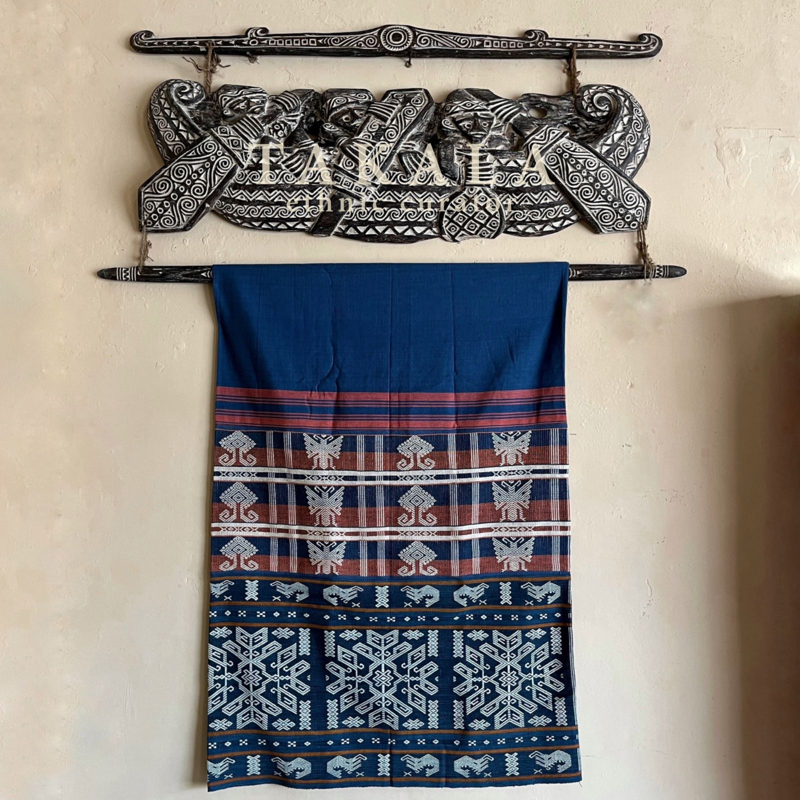 The lower flower motif, referred to as Patola Ratu, was initially exclusive to priests, nobility, and kings. It symbolizes the interconnection between humans and nature, offering guidance to indigenous communities about adhering to their principles and convictions. The central image blends Mamuli, depicting female genitalia and symbolizing the role of women as life-givers, with Karihu, representing the industrious nature of women through the metaphor of an ancient butterfly.
