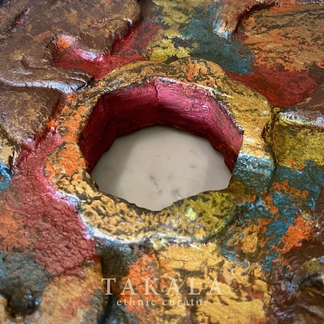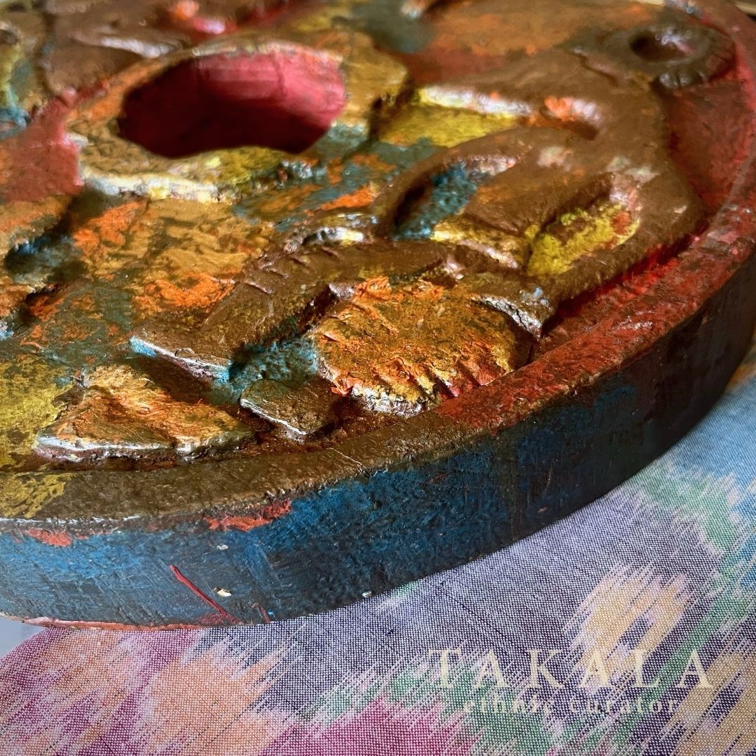 This coin blends Chinese, Javanese, and Balinese symbolism, serving both cultural and spiritual purposes. Its round shape with a central hole reflects Chinese beliefs in harmony between heaven and earth and is used in Feng Shui to attract balance and prosperity. The engraved figures of Semar and Petruk, iconic Punakawan characters, symbolize wisdom, humility, guidance, and the balance between the spiritual and the earthly realms. In Balinese Hindu belief, coins bearing sacred figures such as Semar and Petruk are considered powerful objects, often used in rituals and believed to hold protective and magical qualities. Known as Gobog Majapahit, these coins date back to the Majapahit era and reflect the deep interconnection between art, belief, and everyday life.