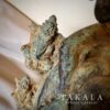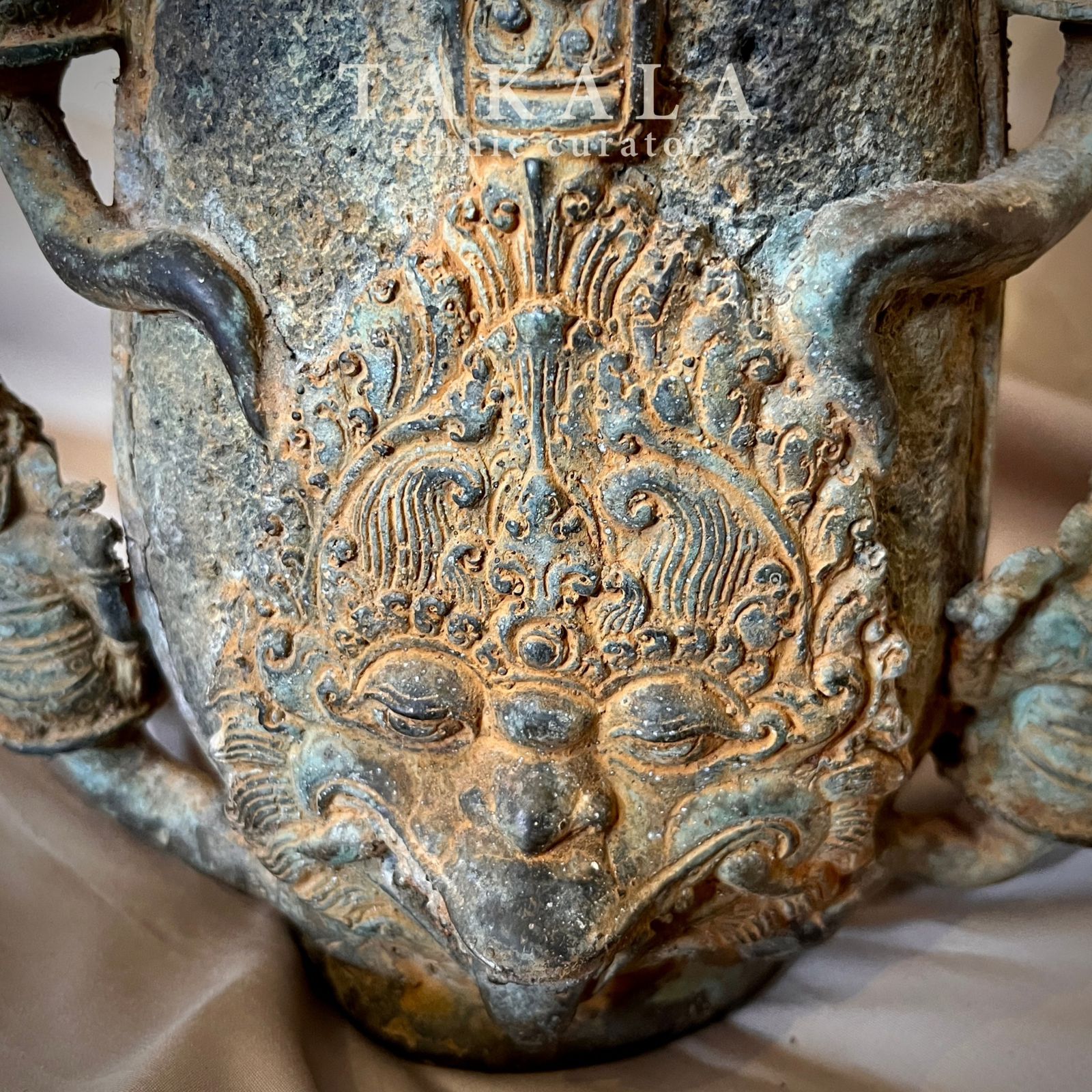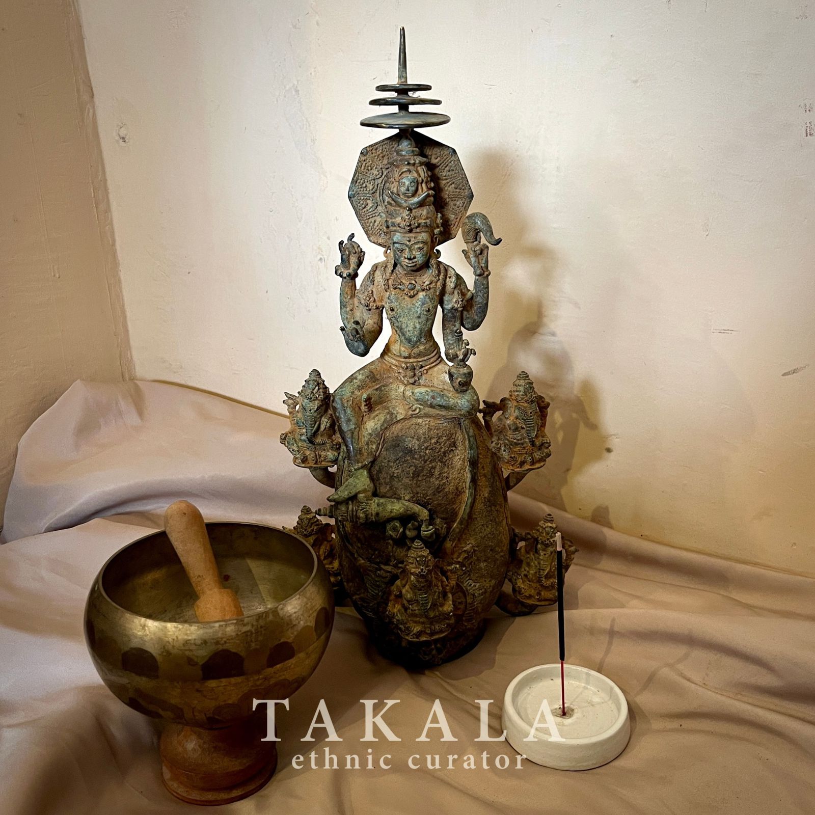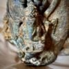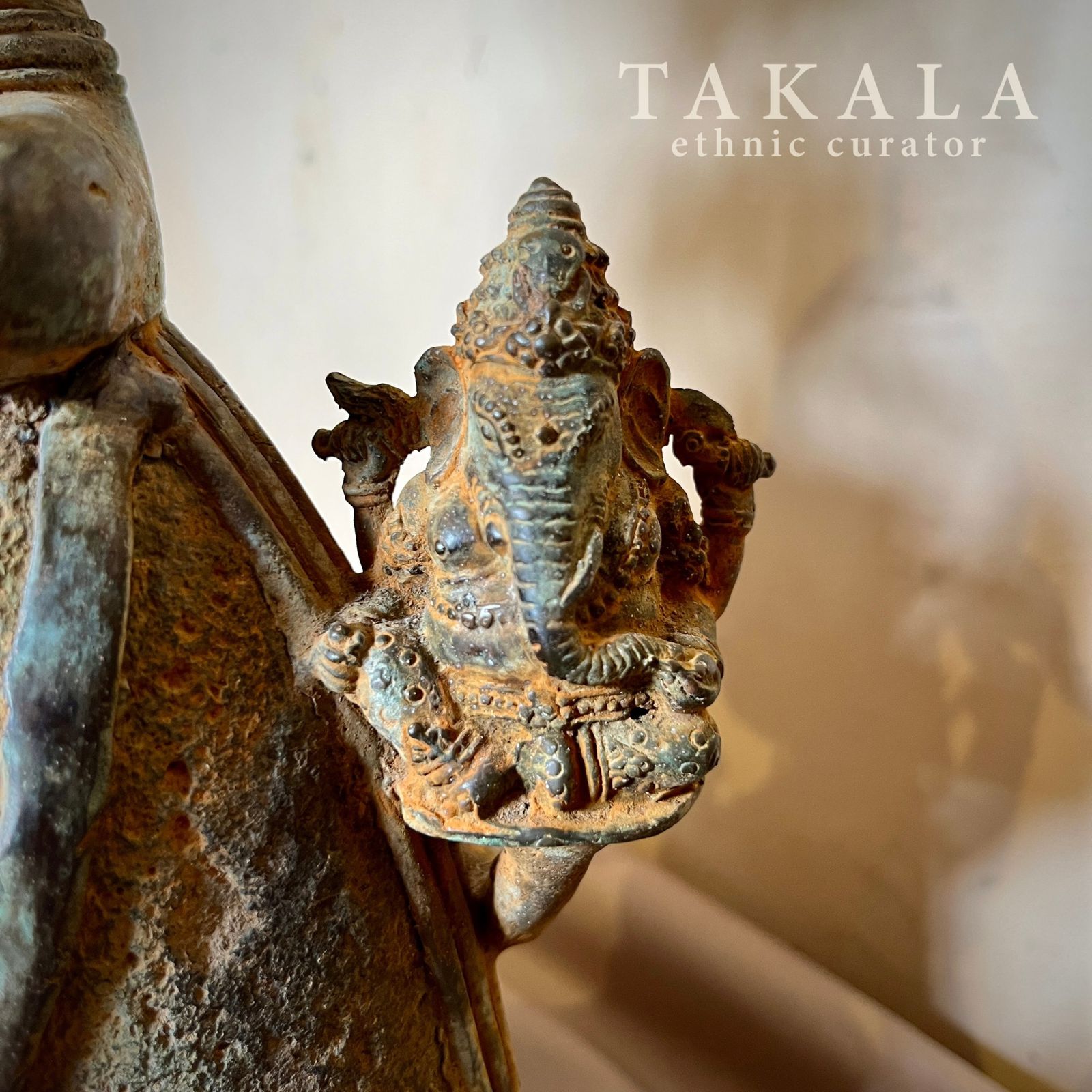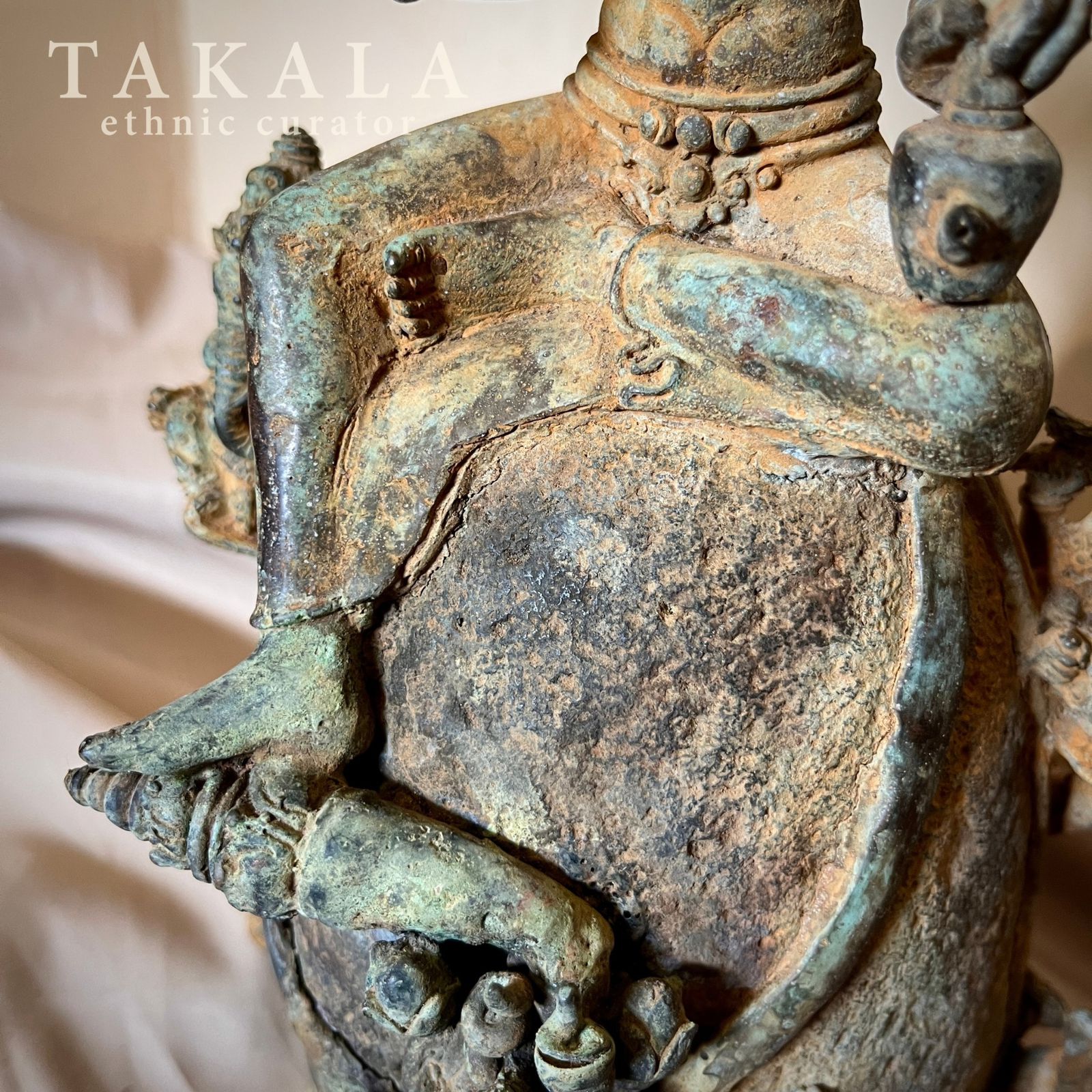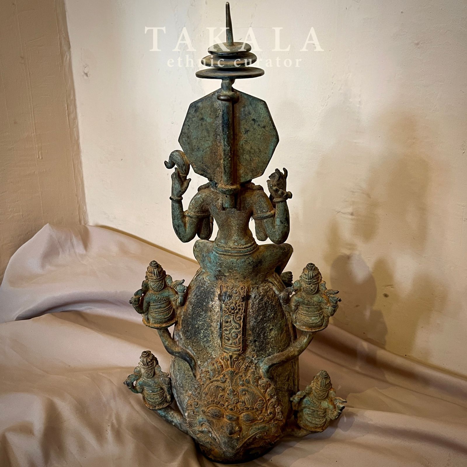 Shiva’s four hands carry layered meanings: both right hands display the karana mudra, a gesture to dispel evil, while one left hand holds a kamandalu, symbolizing purity and immortality, and the other holds a camara, representing divine authority and cleanliness. Beneath him are five small Ganeshas, illustrating his dual role as both ascetic yogi and nurturing householder, while also signifying his protective and creative energy. On the reverse side is Jatayu, the heroic bird from the Ramayana who sacrificed himself in an attempt to save Sita, embodying courage, loyalty, and dharma.