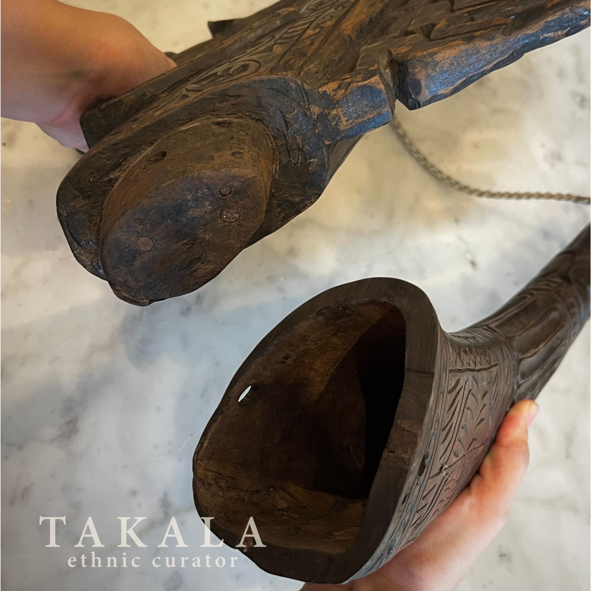 Material: Wooden Carving, Buffalo Horn, and Boar Hair