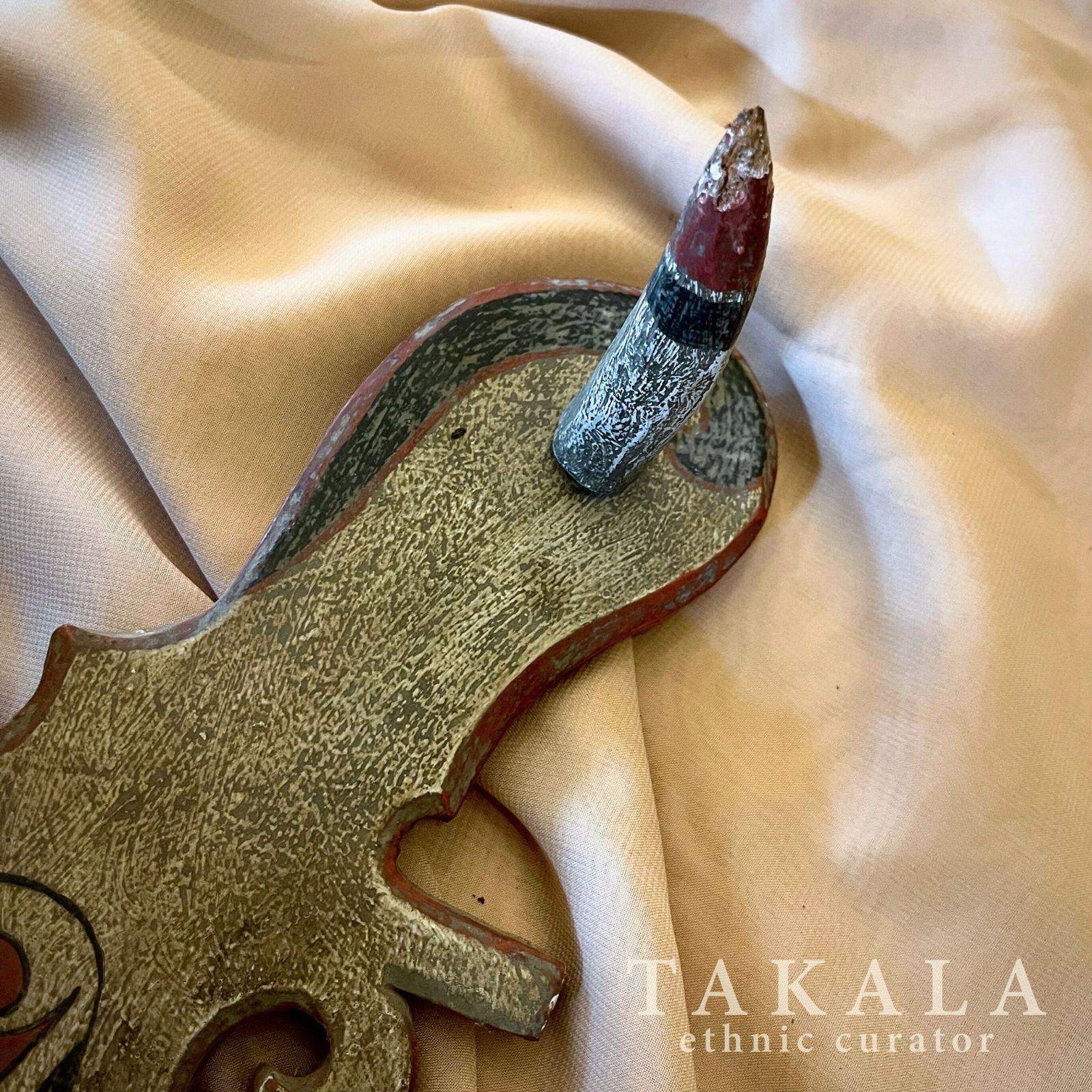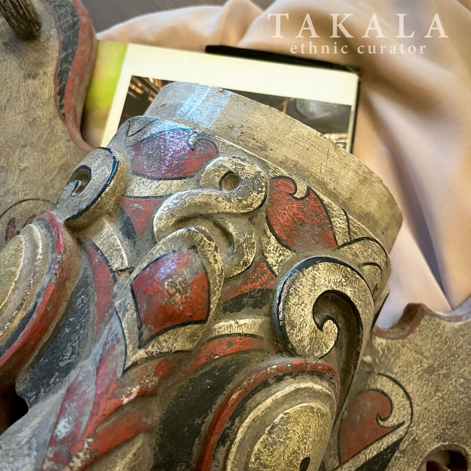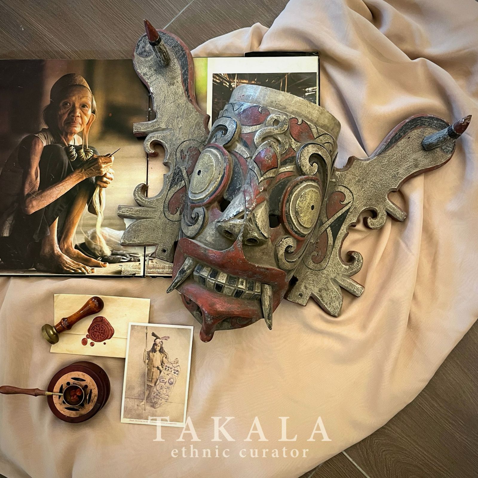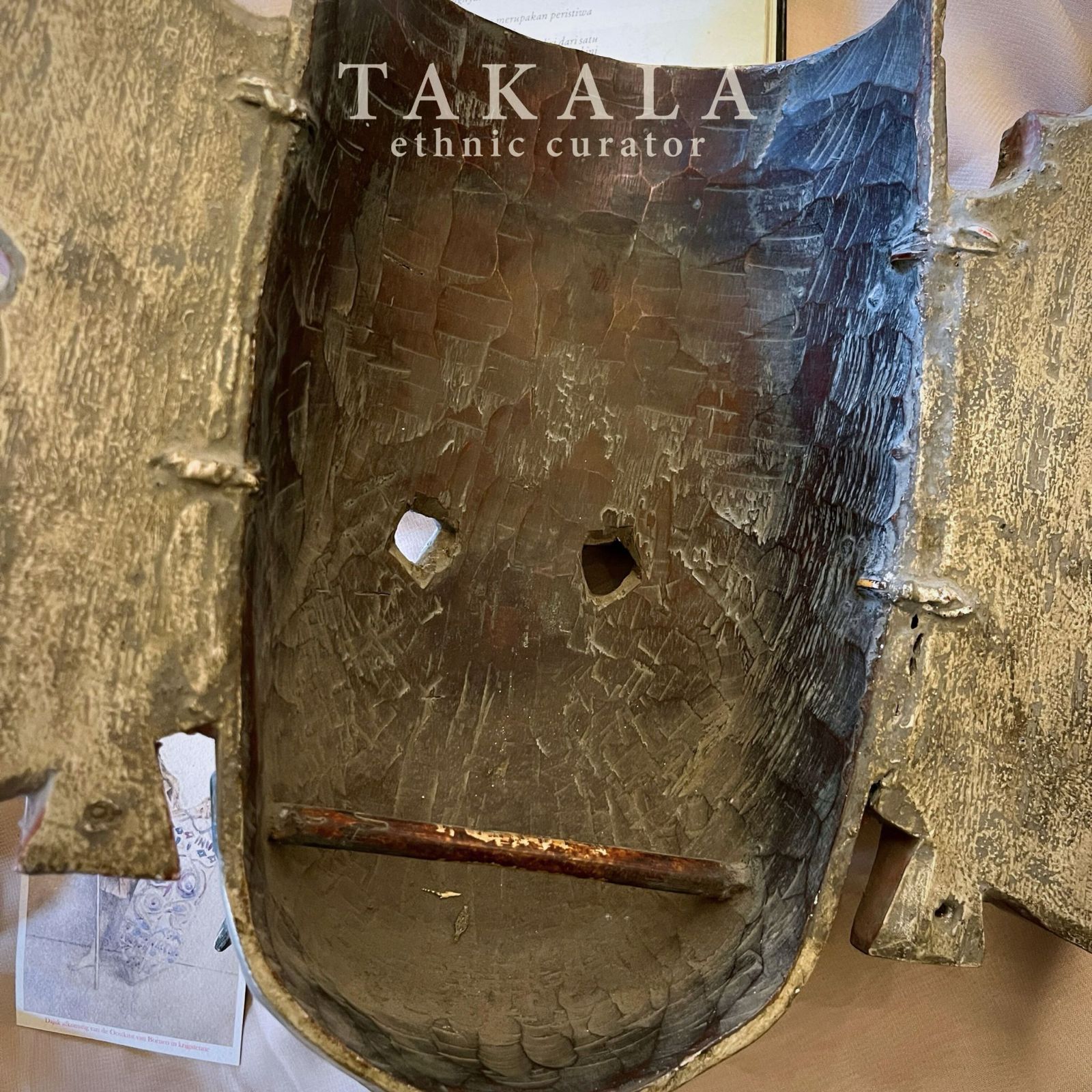 Hudoq is a traditional ritual mask of the Dayak Bahau people from East Borneo. The name Hudoq means “incarnate,” referring to ancestral and sacred beings that descend to bless the earth with fertility. Worn in the Hudoq dance at the start of the planting season or after harvest to drive away crop pests, ask for protection, and give thanks to the ancestral spirits. The masks depict a combination of pests and harmful animals that threaten rice fields, such as birds and pigs. There are also eagle masks symbolizing the protector of the harvest, and human faces representing Dayak ancestors. It also acts as a safe medium for spirits, since direct sight of spirits is believed to bring misfortune.