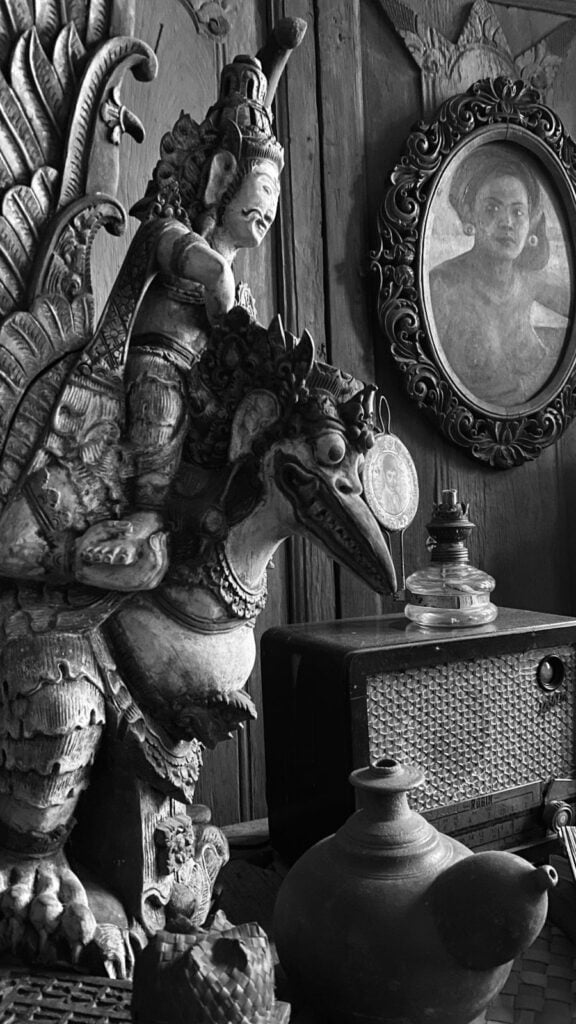 In khayangan, Garuda meets Vishnu, the god who owns tirta amerta The two dragon guardians of the tirta amerta must first be defeated for Garuda to be able to seize the tirta amerta, therefore he fights fiercely to accomplish this. Seeing Garuda’s sincerity to get tirta amerta, Vishnu then invited Garuda to drink tirta amerta, but he refused. After that, Lord Vishnu presented tirta amerta, which was put in a kamandalu (a water container like a small teapot/jar) that was tied with weeds. Garuda was instructed to go back to Vishnu after completing his mission to set his mother free since Vishnu had been pleased to have Garuda serve as his ride.