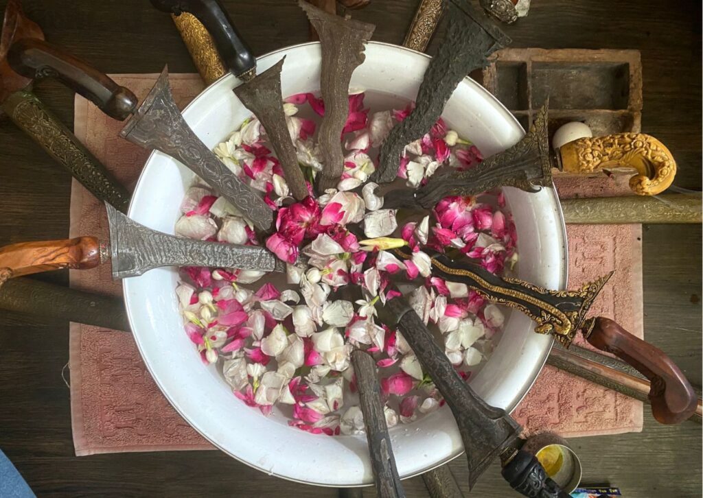 In Aceh, Sumatra, Rencong is not only used as a self-defense tool, it has a unique feature and unexpected charm, which symbolizes gallantry, honor, and an aristocracy. It is believed to have mystical powers. According to the head of the Teaching and Education Faculty of Syiah Kuala University, Husaini Ibrahim, the type of Rencong is distinguished by the material it is made of. Materials such as copper, silver, gold, and ivory belong to aristocrats. While those for ordinary people usually only use iron as the raw material. As time goes on, Rencong is also used as wedding jewelry and other important traditional events. Aceh’s ancestors, who are inhabitants of Sumatra island, believe that Rencong can protect the owner and his family from bad spirits and treat possessed people.